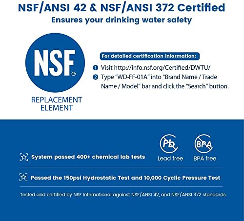 - NSF certifications: Tested and certified by NSF International against NSF/ANSI standard 42 for the reduction of chlorine, taste and odor, and to NSF/ANSI 372 for lead-free material. Provides you with safer and healthier water.