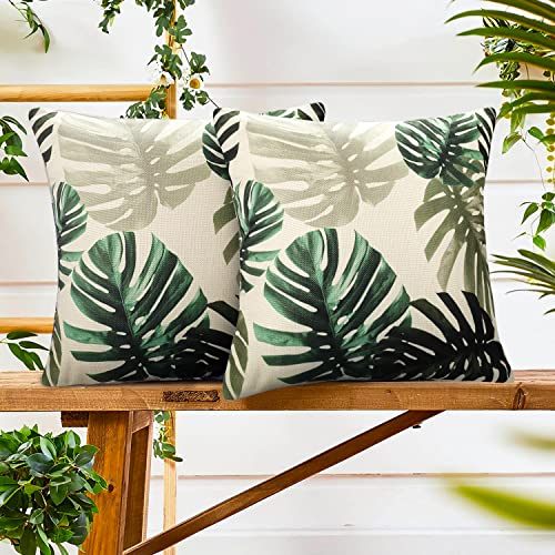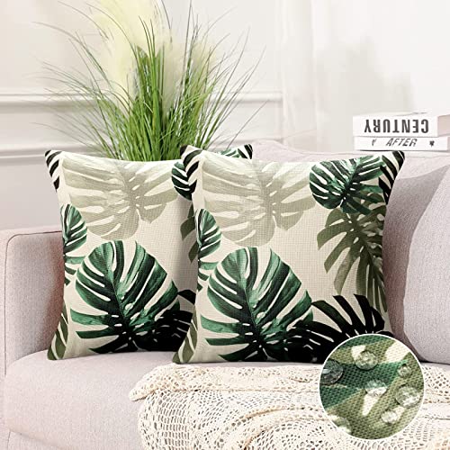 Waterproof Cushion Covers Green Plants Outdoor Cushions 45x45 CM Sofa Covers Pillowcase Double Sided Monstera Leaves Tropical Pillows for Bedroom