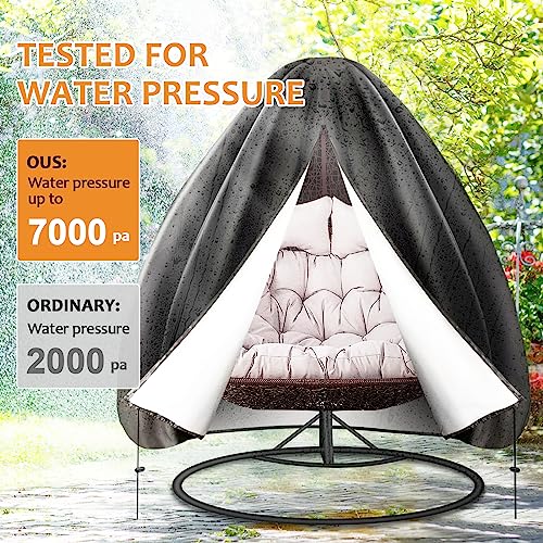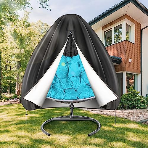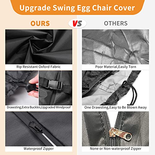 - 【100% Waterproof】TIP: Please measure before buying to make sure you get the correct size. This egg chair cover is made of premium oxford, durable and not easy to tear. Use ripstop folded seam to prevent leaking, making it more difficult for water to penetrate at the pinhole. Inner layer is coated with pvc waterproof coating, greatly improved waterproof performance. Full coverage to protect your garden swing egg chair from rain, snow, dust and UV.
