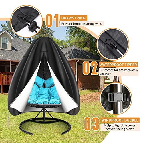 - 【Upgraded Windproof Design】There is an adjustable elastic hem cord to adjust for a tight and custom-like fit. Secure your outdoor swing chair tightly on windy days. In addition,The heavy duty egg chair covers feature a Windproof Buckle to increase security so that it is not easily blown away by the wind.