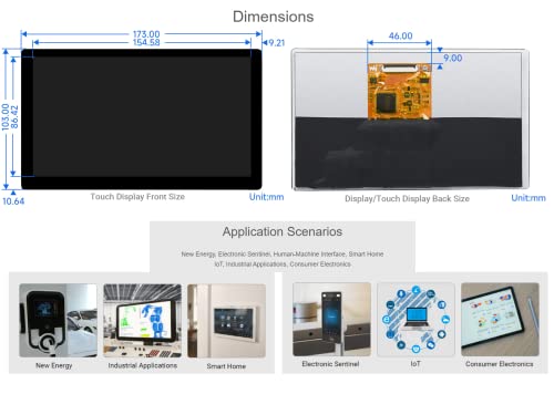 - 👉 <b>WIDER VIEWING ANGLE</b> This 7inch IPS Capacitive Touch Screen LCD with 1024×600 Resolution Provides Wider Viewing Angle. VCOM voltage adjustment for optimizing display effect.