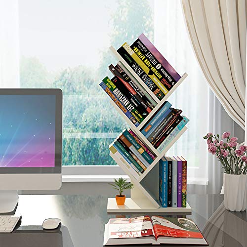 WAYERTY Tree Desktop Bookshelf Storage Rack,standing Book Organizer Shelf Simple Open Study Organizer Bookcase Office Home Decor Space White 31x1