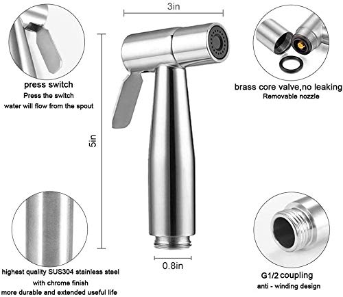 Home DIY & Tools WEIDMAX Handheld Bidet Douche Shower Spray for Toilet, Stainless Steel Bidet Shattaf Sprayer Kit Bathroom Cloth Diaper Washer Shower Head for Per