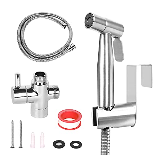 • PACKAGE INCLUDES – WEIDMAX High quality hand held bidet sprayer, 49 inches stainless steel bidet hose, Shut off valve, Stainless steel bidet holder, Stainless steel bidet holder hook, Bidet holder plate, 1.5m teflon tape, Accessories set, English user manual and fully packaging.(Wall-mounted,hook to toilet tank ).include T-adapter valve.
