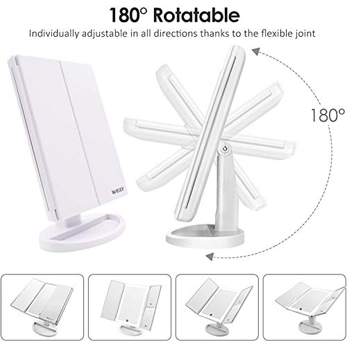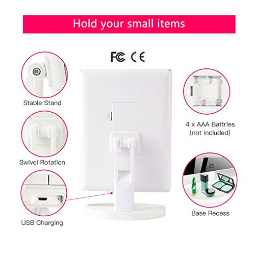- Dual Power Supply: Both 4pcs AAA battery(Not Include) and micro USB cable(Include) can power for this lighted mirror, in addition, it's detachable stand and folding design allows you to take the lighted cosmetic mirror to anywhere when you go.