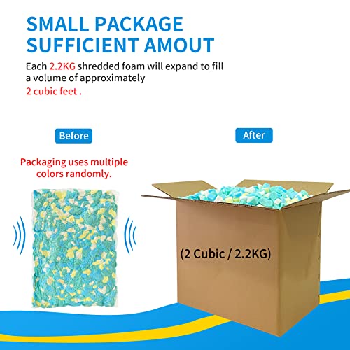 - 【2 Cubic Feet Volume】5 lbs memory foam filler can expands to a 2 cubic feet volume, suitable for perfect stuffing pillows, dog beds, plush toys, DIY crafts. Note: When filling floor cushions, bean bag chairs and large items, please purchase multiple filler.