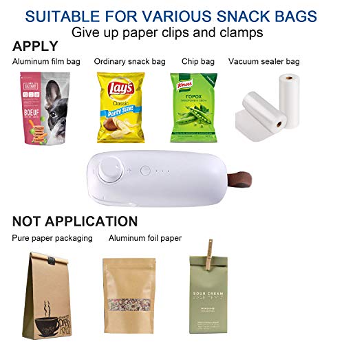 - 【Wide Application】This bag sealer can sealing multiple material of bags : coated aluminum foil bags, PP, PE, PVC bags within 0.35mm thickness .Such as common plastic bags, bags for rice, tea, chips, flavoring, salt or other snacks bags, which can fully meets your daily use requirements .