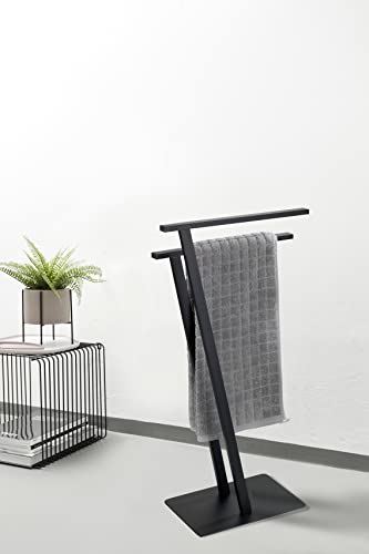 - Towel holder with 2 towel rails: whether as a towel stand in the bathroom or as a clothes rack in the bedroom, the combination of design and function makes the holder a practical eye-catcher that should not be missing in any household.