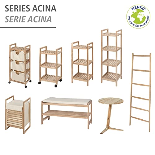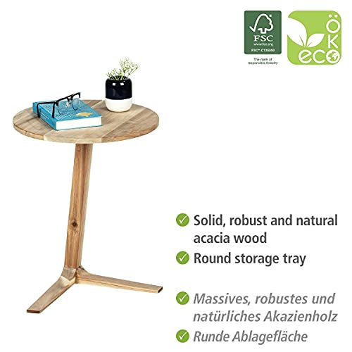 - Box contents: Acina side table by Wenko made of untreated, genuine acacia wood FSC certified, dimensions (W x D x H): diameter 40 x 50 cm, thickness of the table top: 1.5 cm, diameter of the legs 4 cm; easy to assemble the table top and legs, with gentle plastic pads (EVA) for the floor