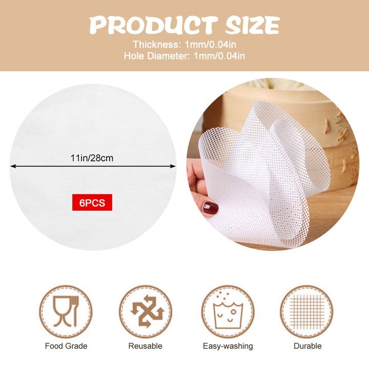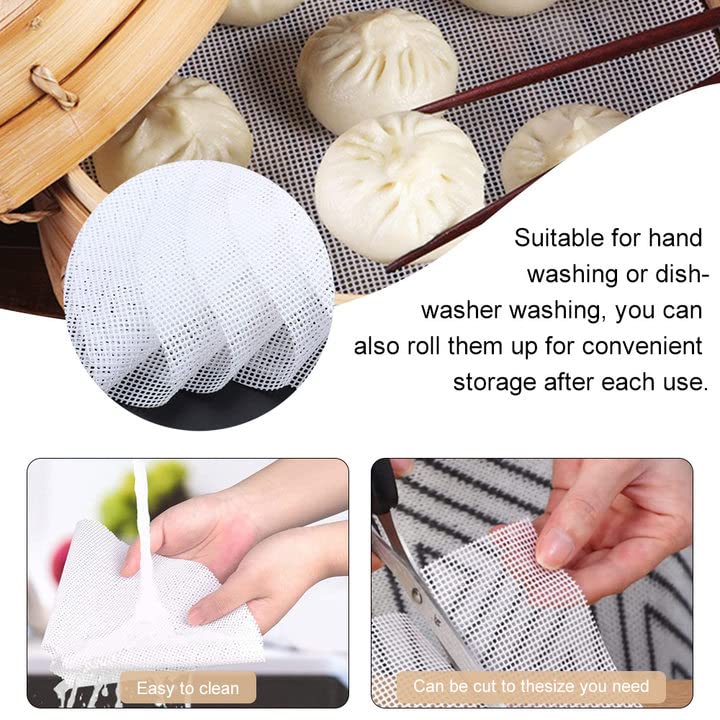 • 🥝【Fine Mesh Design & Even Heating】: The small meshes are evenly distributed on the silicone steamer pad, which not only helps to speed up the steam circulation in the steamer, let the food release moisture evenly, and bring you a good taste; it can also keep small food pieces from falling.