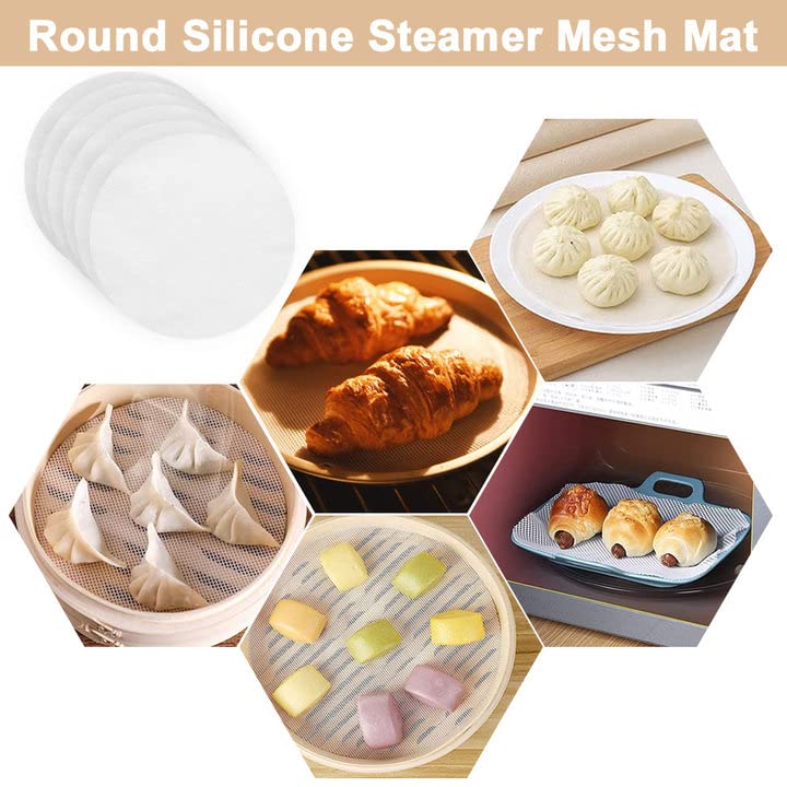 WENRERO 6 PCS Silicone Dehydrator Sheets Non Stick Food Fruit Dehydrator Mats Trays Silicone Steamer Liner Reusable Steamer Mesh Mat Round Dumpli