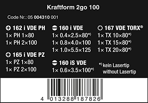 Wera Kraftform 2go 100 VDE 1000v screwdriver Set In Tool Quiver, PH/PZ/TX/SL, 12pc, 05004310001