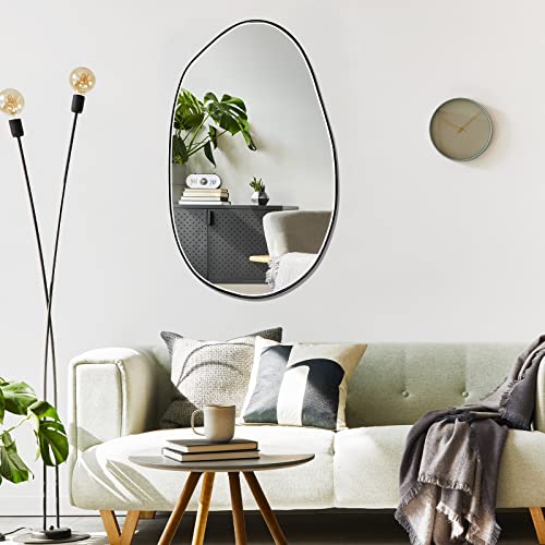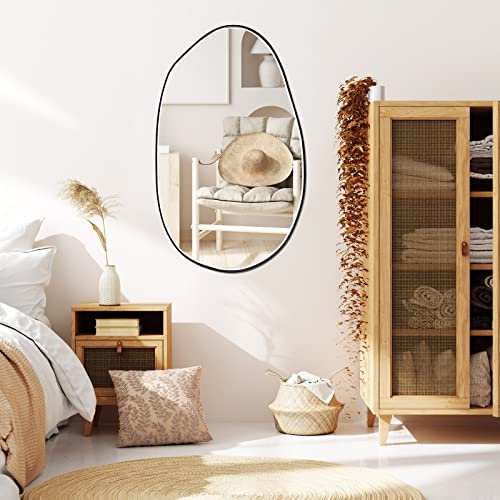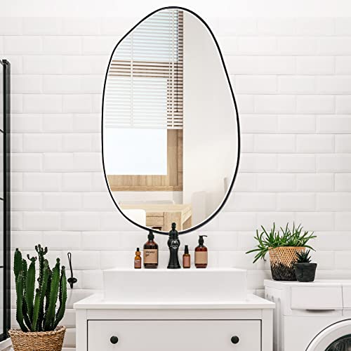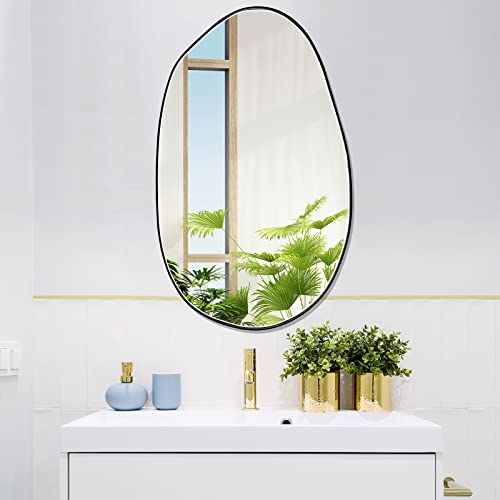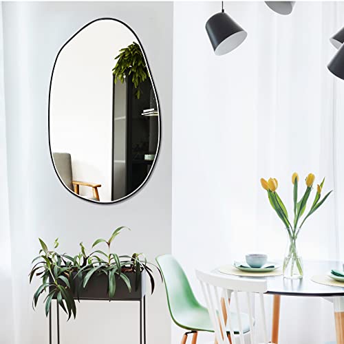 - Appropriate Size: the irregular mirror is approx. 33.5 x 20.5 inches in size, about 1.2 inches/ 3 cm in total thickness, the width of the metal frame is about 0.04 inches/ 1.1 mm, suitable size to better expand the visual space and visually make your room bigger and wider; Please confirm the size before purchase