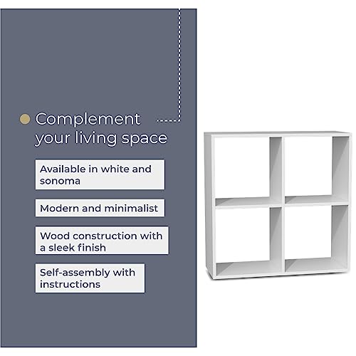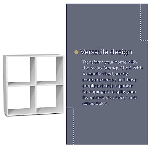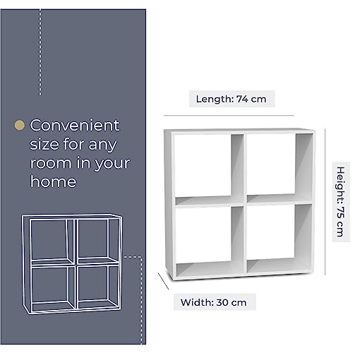- MODERN & VERSATILE DESIGN - Keep your essentials organised and beautifully displayed, showcasing your personal style. The versatile, equally-sized 4-compartment cube shelf is the perfect addition to any room, providing ample storage space for your belongings