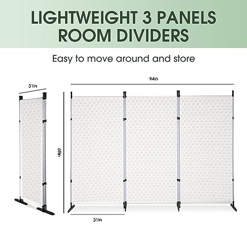 - FOLDING SCREEN ROOM DIVIDER: 3 panels are connected by flexible connectors & feets, so you can utilize the length of the divider as needed and easily fold it down for storage when not in use.
