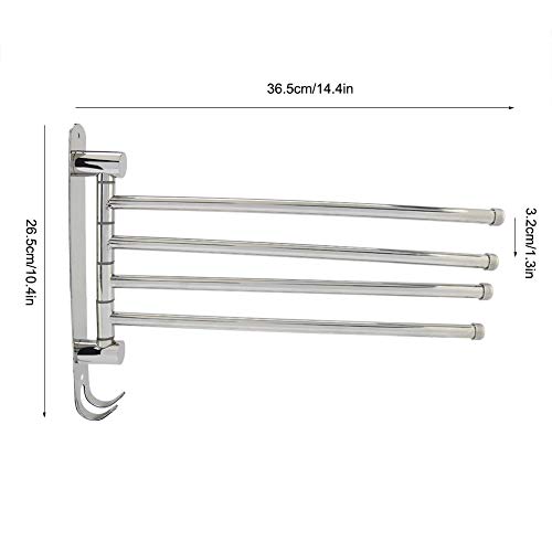 - 【Four-bar with Double Hook】 This amazing towel rack features 4 arms, allowing you to hang your wet and dry towels at the same time without touching each other.