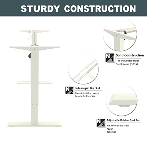 - SOLID CONSTRUCTION:The Industrial-Grade Steel Frame (Q235) of the Adjustable Standing Desk.Press of a button adjust the height between 27.5"-45.2"at a speed of 1"/second with low noise (under 45 dB). Sturdy Construction Frame provide you with weighing up to 280lb.