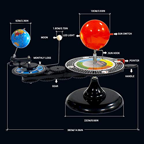 - Multiple moving axes on this gear-driven model to show the stages of daylight, night, season, eclipse, eclipse and moon.