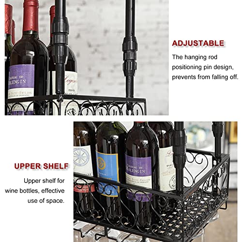 Home Dining Room Furniture Wine Glass Holder, Vintage Hanging Wine Bottle Holder, Iron Wine Glass Rack Ceiling Decoration Shelf, for Bars, Restaurants, Kitchens Upside Down