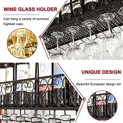 • 【Durable Construction】Our hanging wine bottle holder uses an alloy plating process, ensuring it’s rust-proof, corrosion-proof, and sturdy for use. The bottom hanger can hang different types of goblets, such as wine cup, Bordeaux cup, champagne glass, etc.
