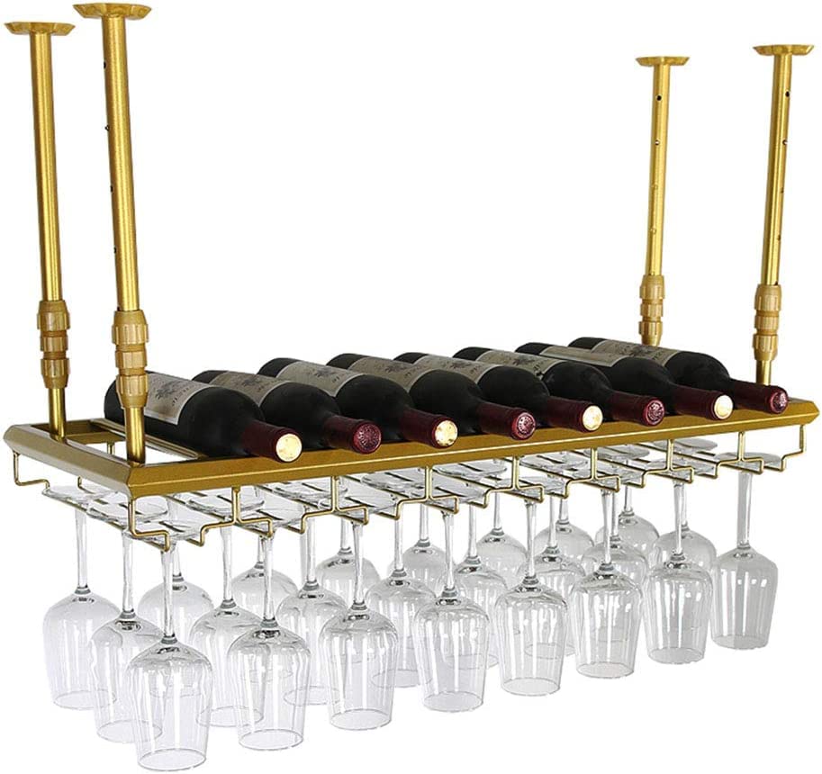 Wine racks Hanging Gold Metal Retro Wall Mounted Wine Champagne Glass Goblets Stemware Rack Holder, 60/80/100/120cm x 30cm
