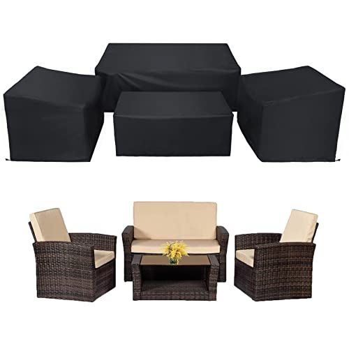 - 【 OUTDOOR RATTAN GARDEN FURNITURE SET SIZE】 4 piece furniture cover set in total: 1 sofa / loveseat cover: 130cm x 69cm x 77cm. 2 armchair covers: 79cm x 69cm x 77cm . 1 coffee table cover: 89cm x 51cm x 33cm. Please take the measurement before you buy.