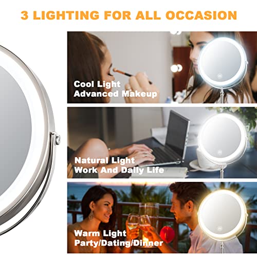 - 【3 Color Lighting Modes】 - The magnifying mirror with light has white, warm and natural light. You can choose different colors of lights according to the makeup required for different occasions.