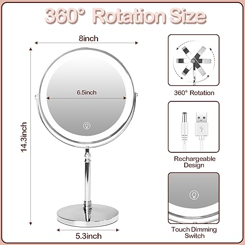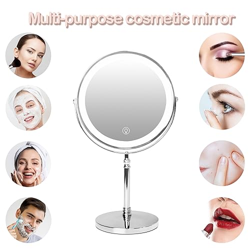Product Description WITFAMILY Countertop Vanity Mirror Why Choose our 8'' Rechargeable Countertop Vainty Mirror ? Smart touch to turn on/off.Double side mirror with 1X/10X Magnification.360°rotatable design and extendable arm.3 color models and adjustable brightness,can be adjusted to any light you want.Rechargeable design, built-in battery and wireless, no need to replace the battery. Convenient charging function: Our bathroom mirror has a built-in 2000mA battery, can be used wirelessly after fully charged. Charging indicator: Red in charging, Green in fully charged. Tips: Our mirror can be fully charged in 2 hours and continuous working for 8 hours.2The charging port is at the connection between the bracket and the mirror. The mirror can also be rotated during charging.