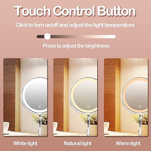 - 【3 Color Lighting Modes】 - The magnifying mirror with light has white, warm and natural light. You can choose different colors of lights according to the makeup required for different occasions.