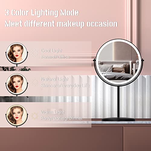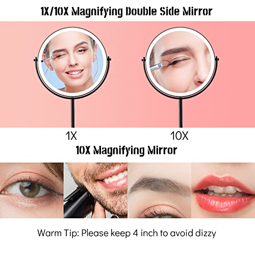 - ❤1X/10X makeup mirror with lights - Unique 2 sides vanity mirror design offers 1X on one side and 10X on the other, easily rotatable to allow you to see either their entire face or focus closely on details. Both sides are ideal for everyone applying makeup, foundation, eyeliner, mascara, lip color, and inserting or removing contact lenses. Note: You should be at least with a distance of 4 inches to mirror for a more detailed and less distorted image or dizzying.