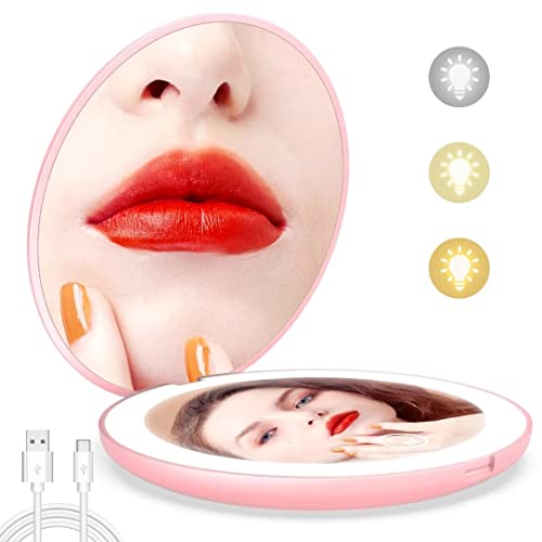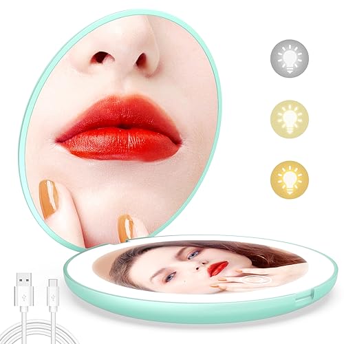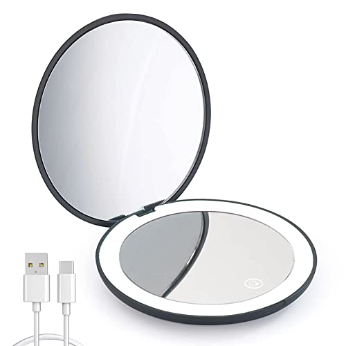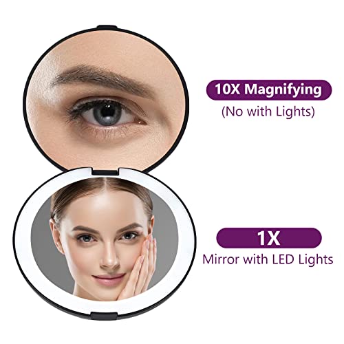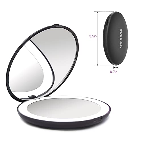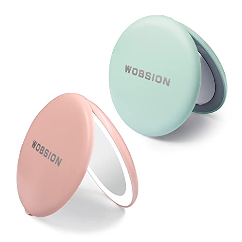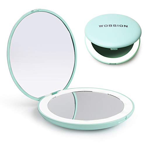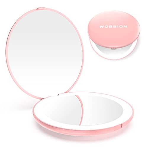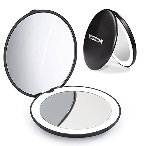 wobsion Led Compact Mirror, 1x/10x Magnification Compact Mirror with Light,Handheld 2-Sided Pocket Mirror,Travel Makeup Mirror,3.5in Compact Mirr