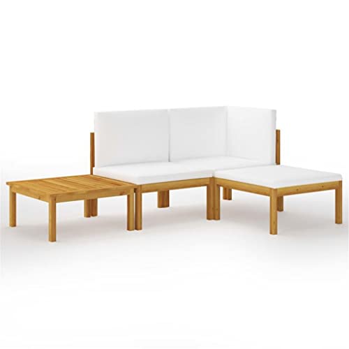 WODMB Garden Furniture 4 pcs with cushions Cream Solid Acacia Wood Garden Set Outdoor Furniture (Color : A, Size : One size)