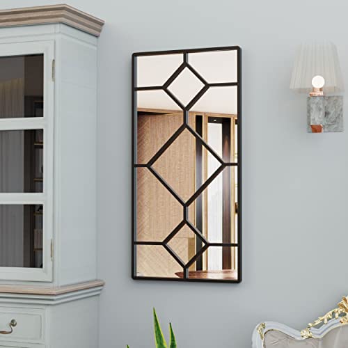 - 30'' x 15'' Rectangular Wall Mirror Decor with the classic lattice design. The geometric look is both modern and has an elegant antique beauty. The natural light reflected from the mirror glass make the room more bright, spacious and heartwarming.