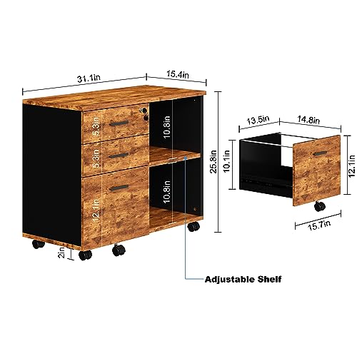 - ➤FREE MOVEMENT: Rolling On Four Wheels, This Printer Stand Can Be Moved And Adjusted In Position Freely. Built-In Brakes On Front Two Casters To Keep It In Position And Add Stability. The Maximum Load Of This File Cabinet: 150 Pounds; Overall Dimension: 31L*15.5D*26H Inches(78.8*39.4*66CM)