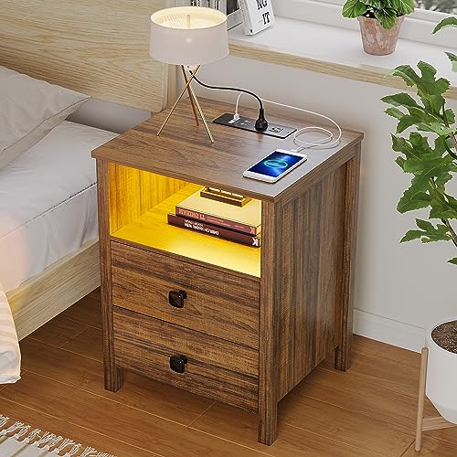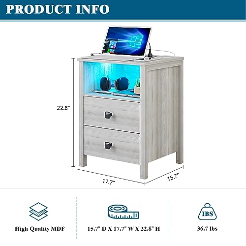 - 🟨【Space-Saving 】Bedside Table Size:15.7"D x 17.7"W x 23.6"H.This nightstand with 2 drawers and an open storage can be used as a drinking table, end table, snack table, sofa side table, side table, entrance table, hall table or bedroom, living room nightstand.