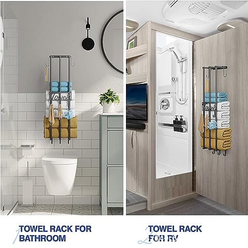 - 【Bathroom Towel Storage Rack】- If you only have a small bathroom where there is no linen closet & lack storage, but desperately need an alternate towel storage option. This towel rack met all your expectations! It can be installed on any wall in the bathroom, next to the shower, above the toilet, Handy for storing towels which are always to hand.