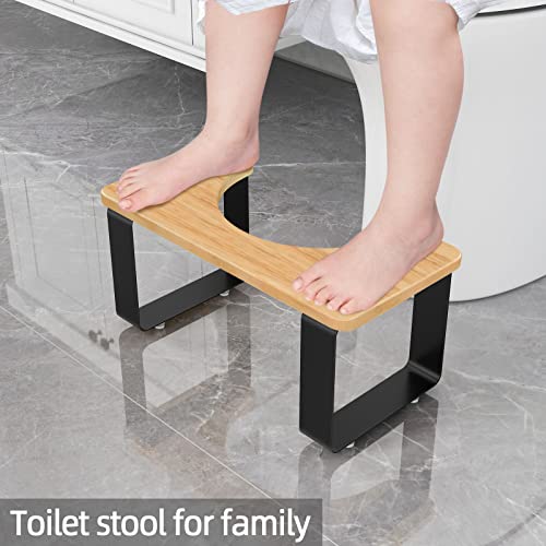WOWOO 7" Squatting Toilet Stool, Bathroom Poop Stool for Adults, Wooden with Metal Potty Stool Anti-Slip, Brown and Black
