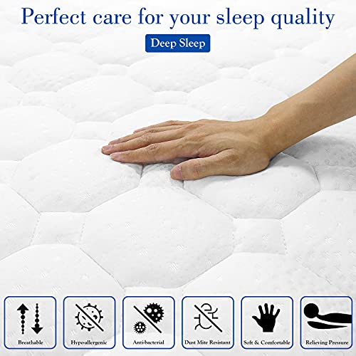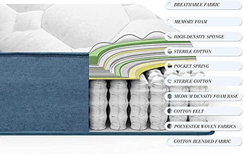 - 【Super Silent Mattress】Built-in high quality individually pocketed springs with good shock absorption and resilience, it can effectively absorb the noise and vibration caused by turning over during sleep, you will not be woken up by the noise and will not disturb your partner, effectively reducing the number of times you turn over and allowing you to sleep peacefully.
