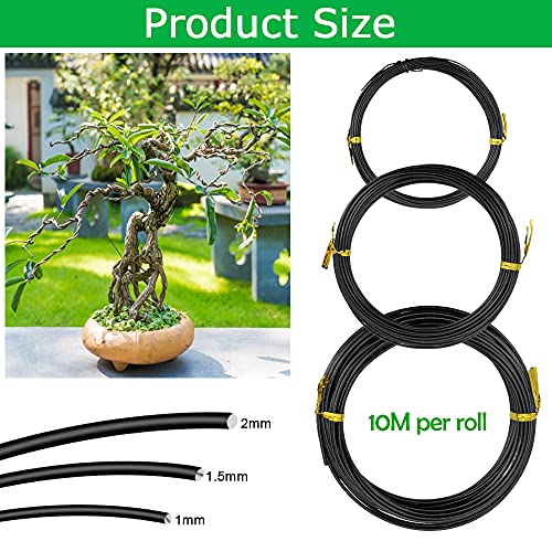- 【Three Different Sizes】This bonsai wire set contains 3 rolls of aluminum wire with different diameters: 1mm, 1.5mm, 2mm, each roll is 10 meters long. You can choose different thicknesses of aluminum wire for gardening bonsai according to your actual needs, and the length is enough to meet your needs.