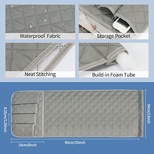 - 【Sofa Armrest Organizer】The sofa armrest caddy is made of high quality polyester, waterproof and wear-resistant. It helps you reach out and get the items you need, such as remote controls, magazines, and books. Size: 35 x 13 inch/ 90 x 34 cm