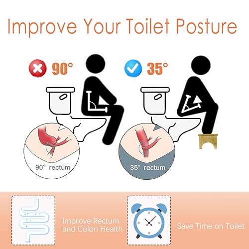• 【Ergonomic and Health Benefits】: The ergonomic design of this toilet stool helps you achieve a natural squatting position, relieving straining and constipation. With a comfortable 35° angle, it promotes healthy bowel elimination and improves overall well-being.