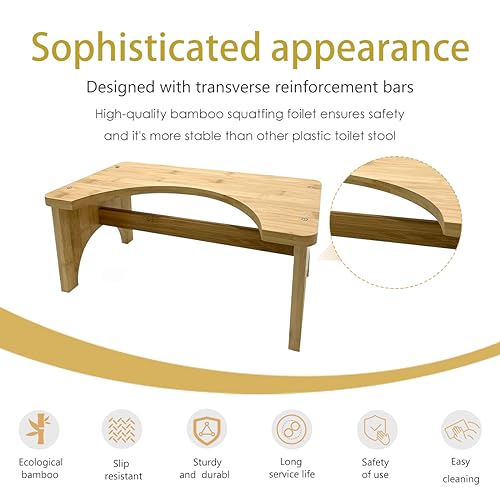 wyewye Bamboo Toilet Stool, Squatting Step Footstool, Toilet Stool Squat Adult, Toilet Potty Stool for Adult and Kids Aid, Poop Stool, Environmen