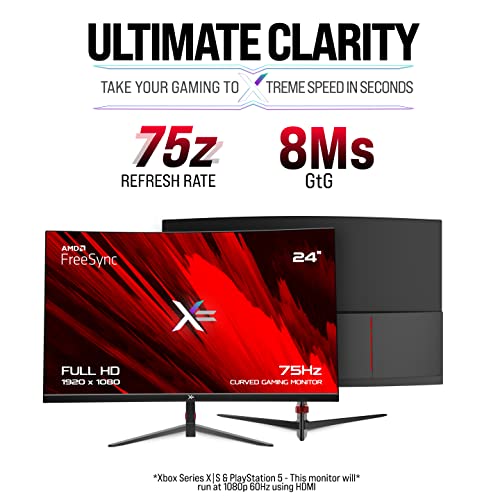 - 24-inch Full HD CURVED VA Monitor with Speakers - 8ms (G2G) response time and 75Hz refresh rate for fast and smooth gaming.