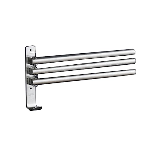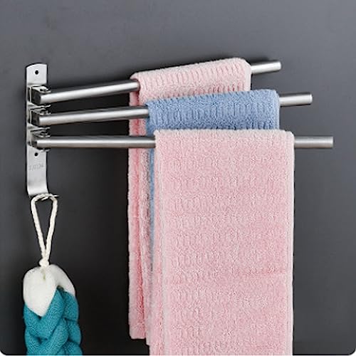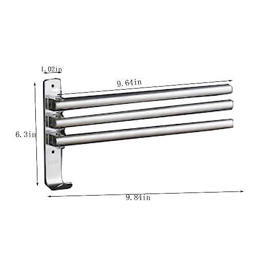 - 【Size】The size of 304 stainless steel bathroom hand towel rackis 26mm*160mm *245mm/1.02inch * 6.3 inch*9.64inch.This swivel bathroom towel rack is equipped with 3 swing arms that can be freely rotated 180°, which is convenient for you to dry the towels in layers, keeping the towels away from moisture, easy to use and healthier, and a double hook is added at the bottom for hanging bath balls, brushes and more.