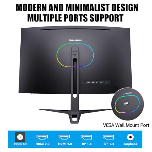XGaming 27 Inch Ultra-Wide Curved Gaming Monitor QHD 165Hz 2560x1440 R1500 Curved Screen, with RGB Light, Wide HDR PC Monitor,FreeSync G-Sync Com