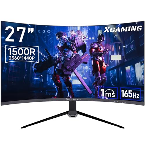 Home Computers & Accessories XGaming 27 Inch Ultra-Wide Curved Gaming Monitor QHD 165Hz 2560×1440 R1500 Curved Screen, with RGB Light, Wide HDR PC Monitor,FreeSync G-Sync Com