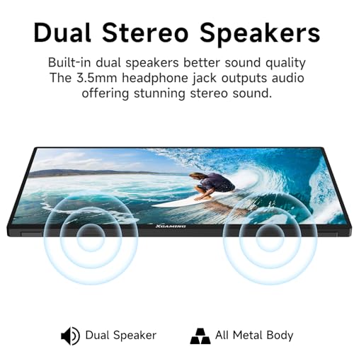 XGaming Portable Monitor 15.6 Inch 1920 × 1080 FHD IPS Monitor Screen with HDR10/HDMI/Type-C/USB-C Eye Care Computer Display, Dual Built-in Speak