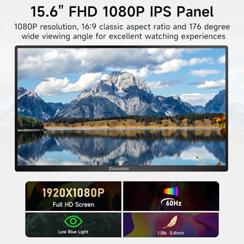 Home Computers & Accessories XGaming Portable Monitor 15.6 Inch 1920 × 1080 FHD IPS Monitor Screen with HDR10/HDMI/Type-C/USB-C Eye Care Computer Display, Dual Built-in Speak