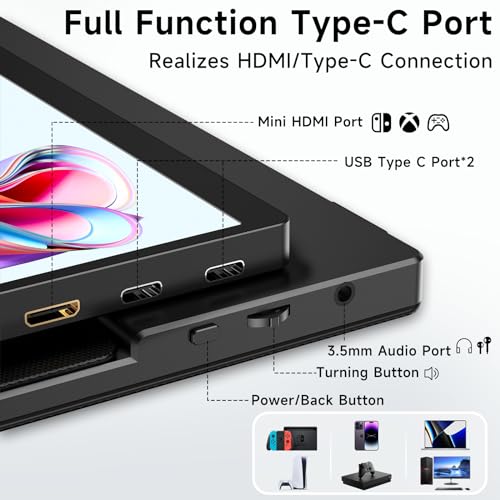 • Wide compatibility and plug and play: with dual USB-C ports and one mini HDMI port, you can easily connect with PC, Mac, Phone, Raspberry Pi, Xbox, Switch, PS4, 5 and the mini HDMI port allows compatibility with any laptop monitor. 2 built-in stereo speakers, 3.5mm audio input, provide a enhanced entertainment experience when watching video or playing games.