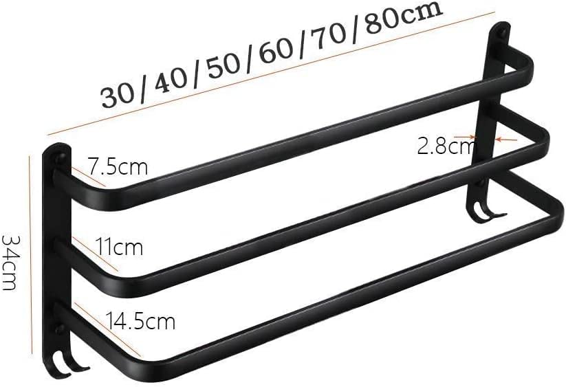 Home Furniture XHALERY Towel Rail 3-Tier Bath Towel Rack with Hooks Aluminum Wall Mounted Towel Holder Black 30CM Punch-Free Towel Bar Rail for Kitchen Bathroom